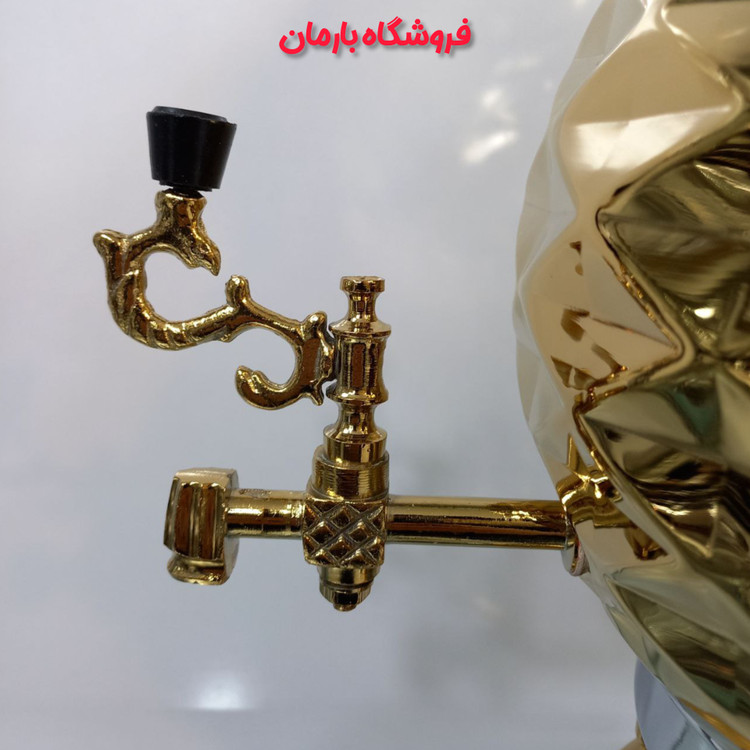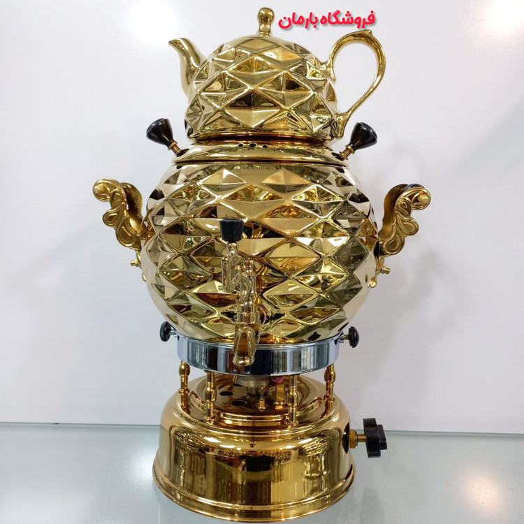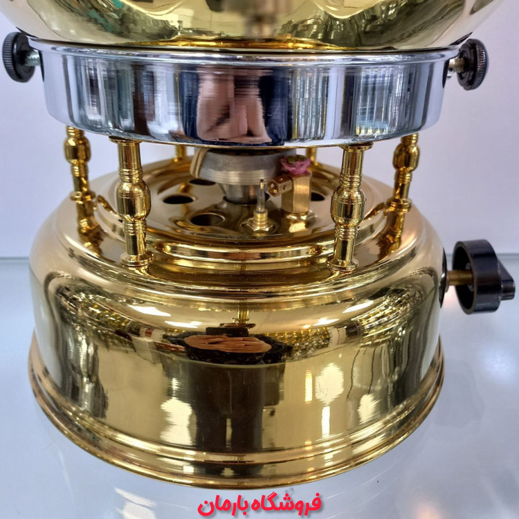 سماور گازی سیلور مدل توپی طلایی اینه دار ترموکوپل دار