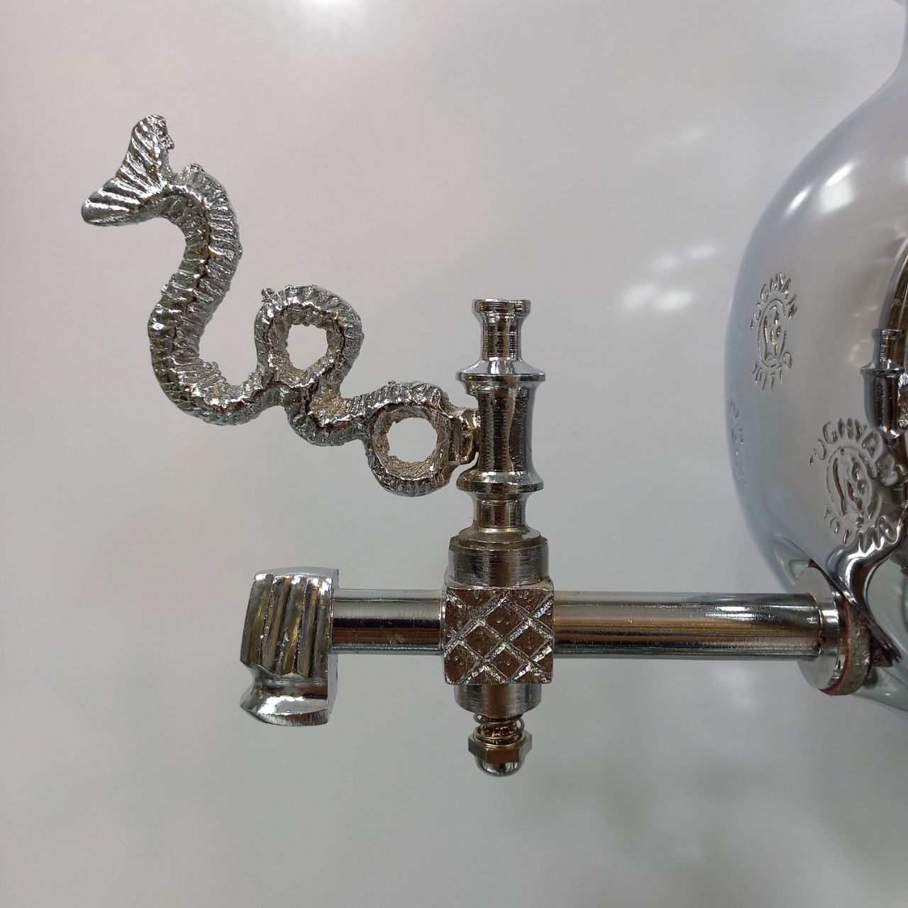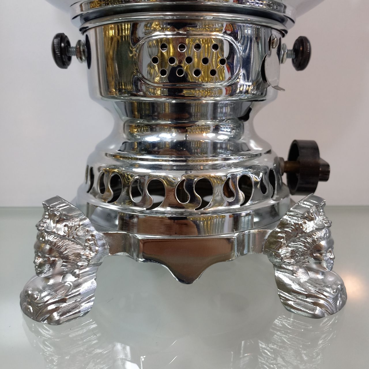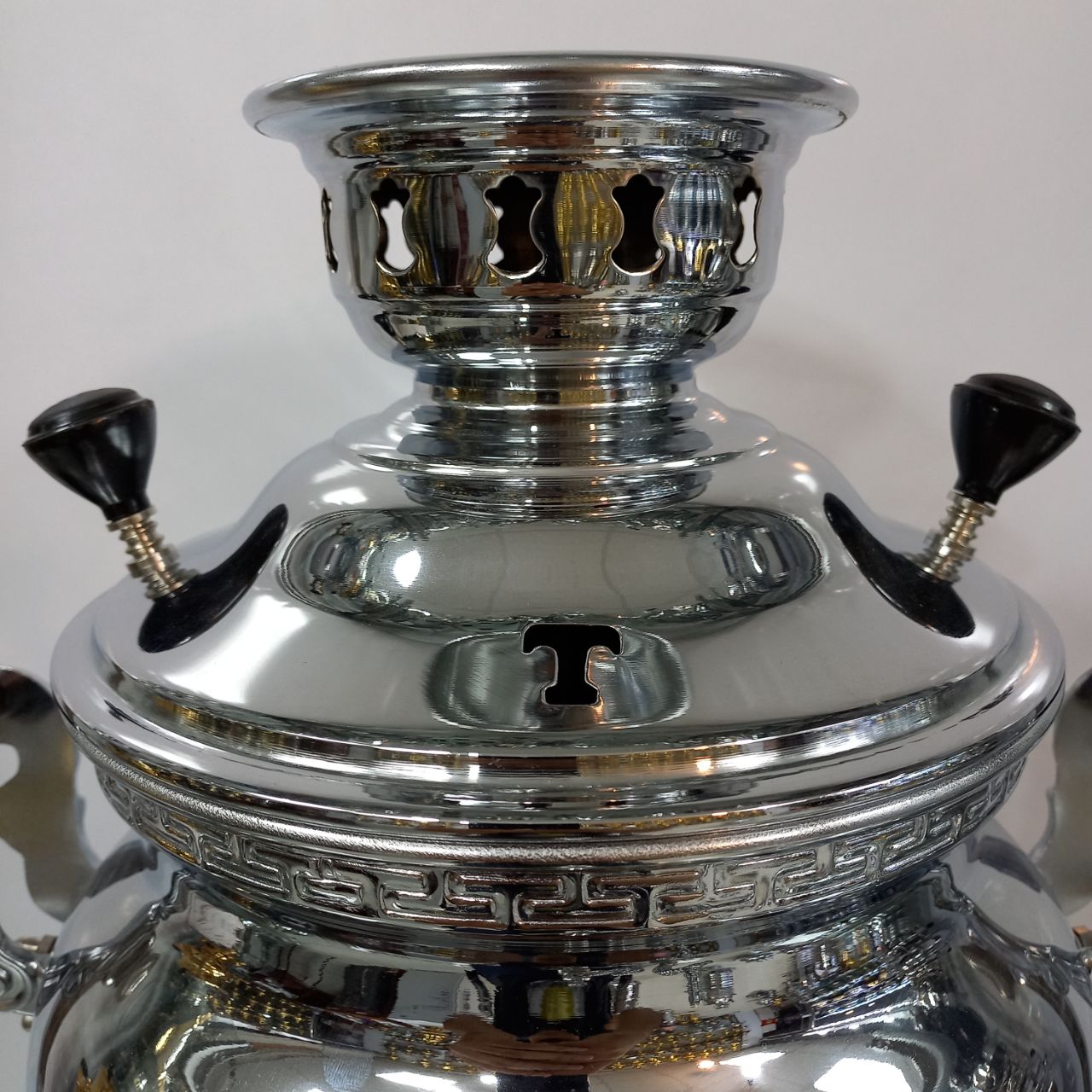 سماور گازی طغیان مدل خمره ای ساده ظرفیت ۶ لیتر رنگ نیکل کروم ضخامت ورق ۸ دهم جنس بدنه برنج دارای یک سال ضمانت و گارانتی