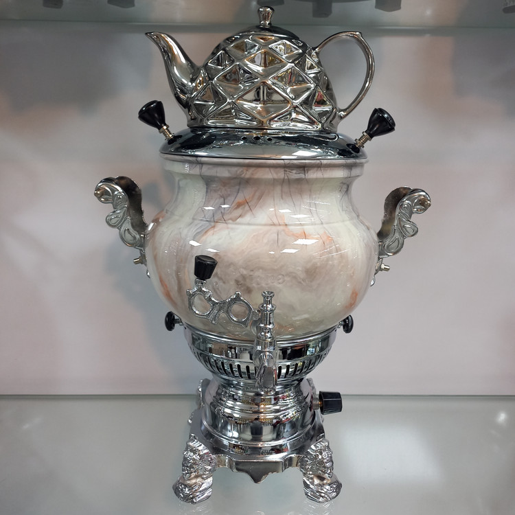 سماور گازی سیلور مدل نگین سنگی کروم کد 4052