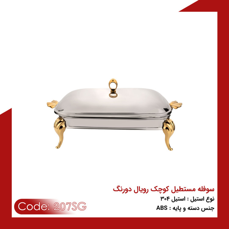 سوفله مرغ خوری رویال مستطیل کوچک براق دسته طلایی